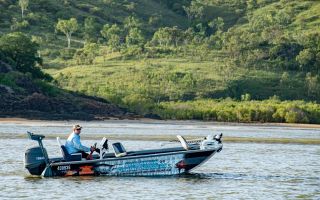 The Lil' Punt is a 4.6m Super Barra Punt in survey and carries 4 guests with ease. All seating is padded and is situated up the middle of the boat. For the fly fishermen and luring there is also an elevated front casting deck.